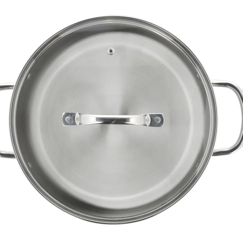 Fremstillet i rustfrit stål med kraftig induktionsbund, blankpoleret udvendigt, matpoleret indvendigt og med måleskala.