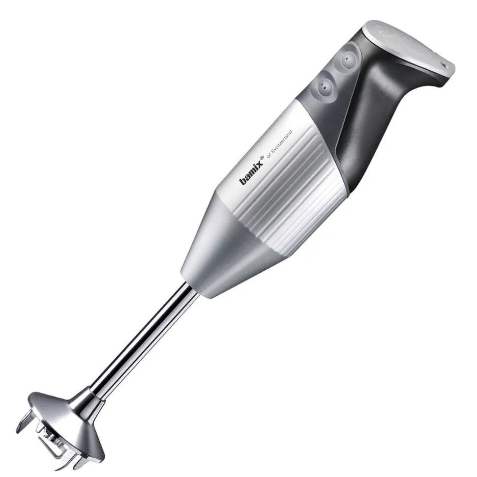 bamix® Swissline-stavblender med en kraftig 200 watt motor, der sikrer pålidelig hjælp til selv de hårdeste opgaver i køkkenet. Stavblenderen har to hastighedsindstillinger, softgrip-sikkerhedsknap og en praktisk spiralledning, der giver masser af fleksibilitet. Til produktet medfølger multifunktionskniv, blenderskive, piskeskive, processor, mixekande med låg 1000 ml og bordstander samt en instruktionsmanual. Livstidsgaranti på motor.