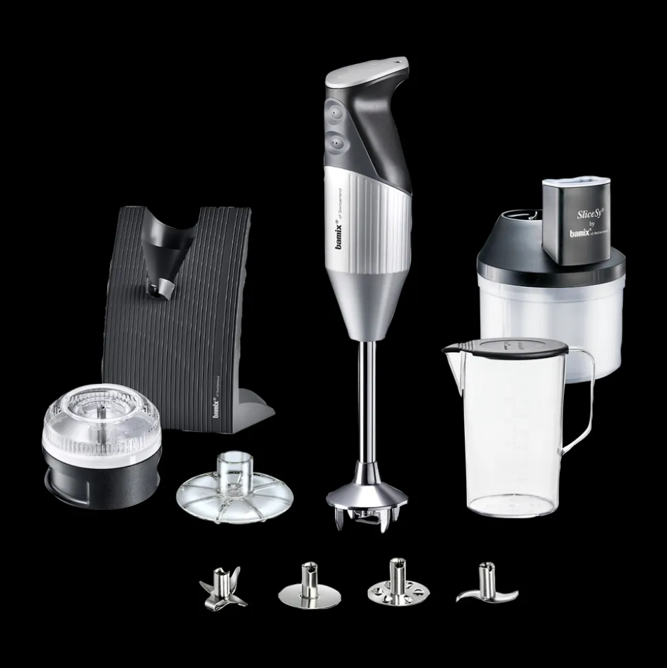 Med din bamix® Swissline Superbox og dens tilbehør kan du piske, purere, løsne, røre, blende, snitte, mikse, male, rive, skære og hakke.
