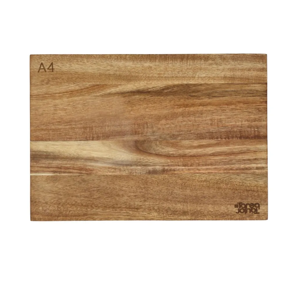 Skærebræt 29,7 x 21 x 2,5 cm i naturligt akacietræ. Skærebrættet er en smuk tilføjelse til køkkenet og er velegnet til fisk, kød og grøntsager. Vaskes med varmt vand og mild sæbe. Tåler ikke opvaskemaskine. Brættet kan med fordel efterbehandles med olie et par gange om året for at bevare den flotte overflade.