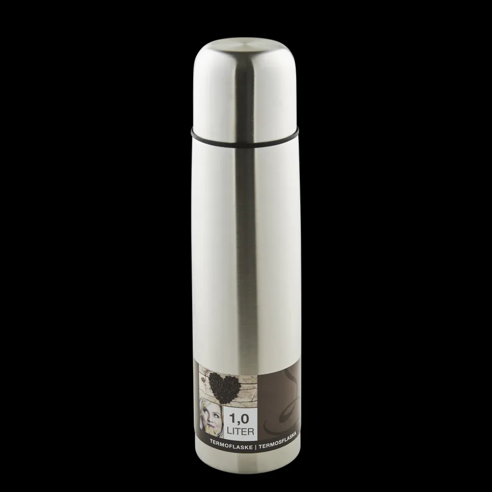 Forvarmes med varmt vand fra hanen, inden flasken fyldes med varm kaffe eller the.