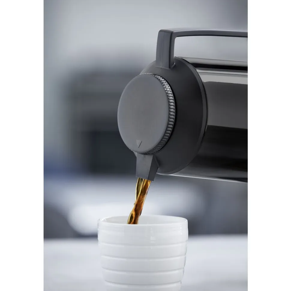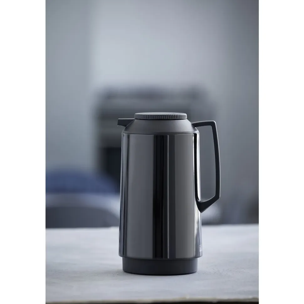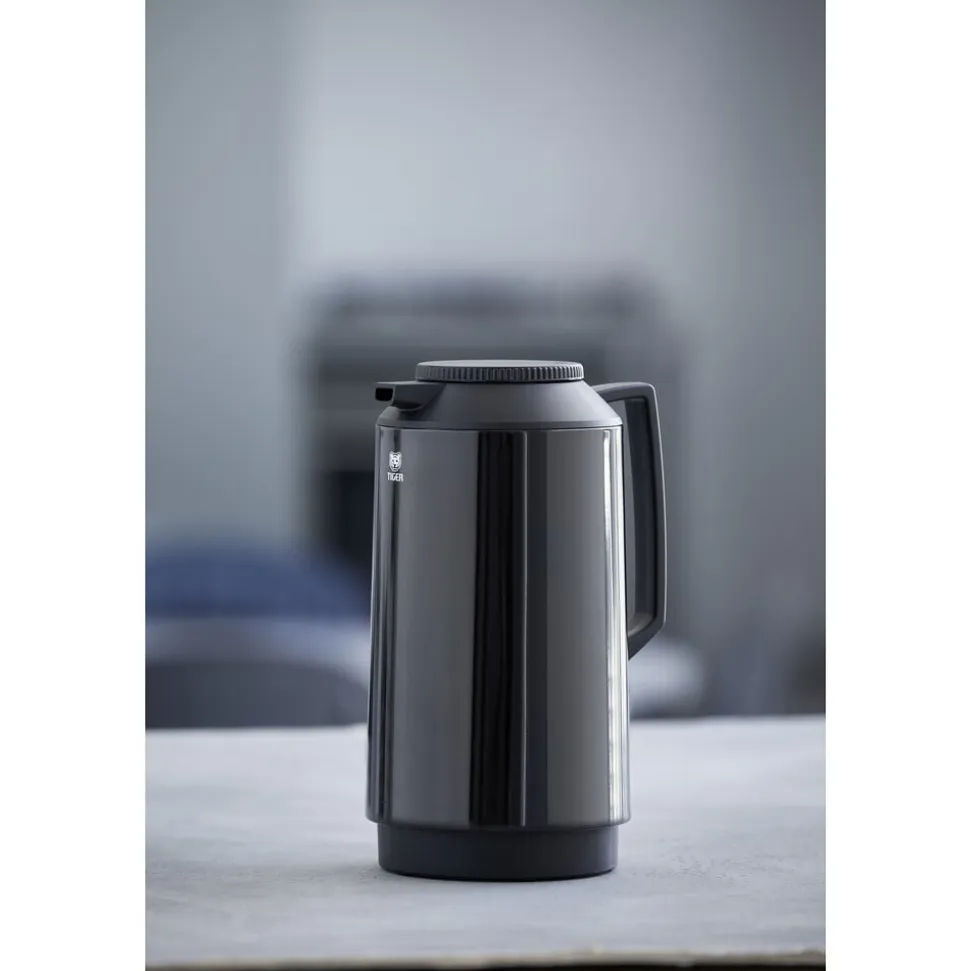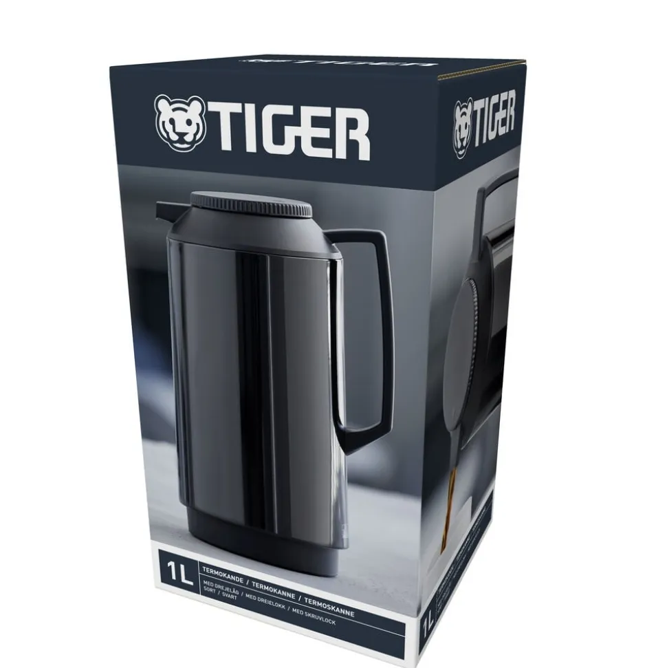 Termokanden fra Tiger er med sit enkle, klassiske design den perfekte termokande og lige velegnet til kolde og varme drikke. Kanden har glasindsats, rummer 1 liter og åbnes og lukkes ved at dreje på låget. Sort.
