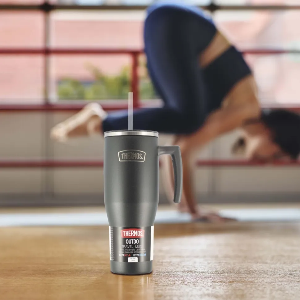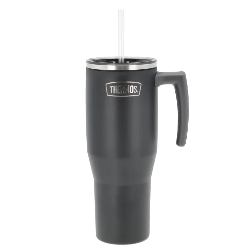 Termokrus med hank i rustfrit stål. Udstyret med et låg, som har sugerør. Holder drikkevarer kolde i op til 24 timer. Ideelt når man er på farten. Kruset passer til de fleste kopholdere i bilen, hvilket gør det perfekt til pendlere og lange køreture. Termokruset er let at rengøre.