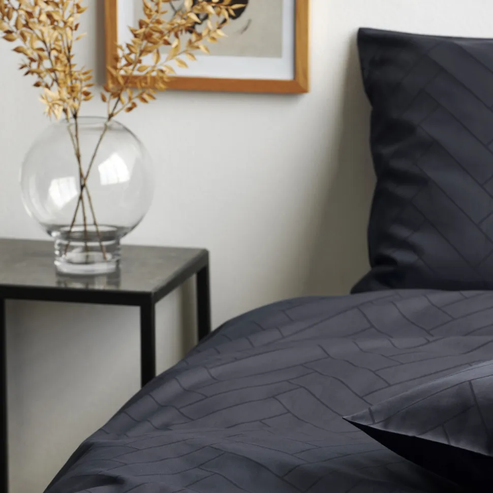 Sov i udsøgt damasksengetøj med Tiles-mønstret vævet ind i stoffet. Sengetøjets look vil få sengen til at føles ekstra luksuriøs. De fine bomuldsgarner og satinvævningen giver den særlige matte glans, der er meget populær.