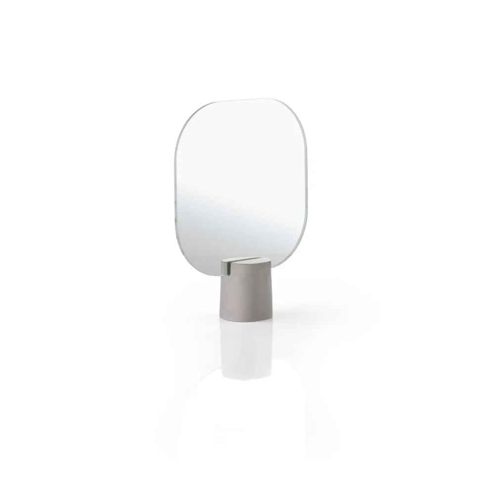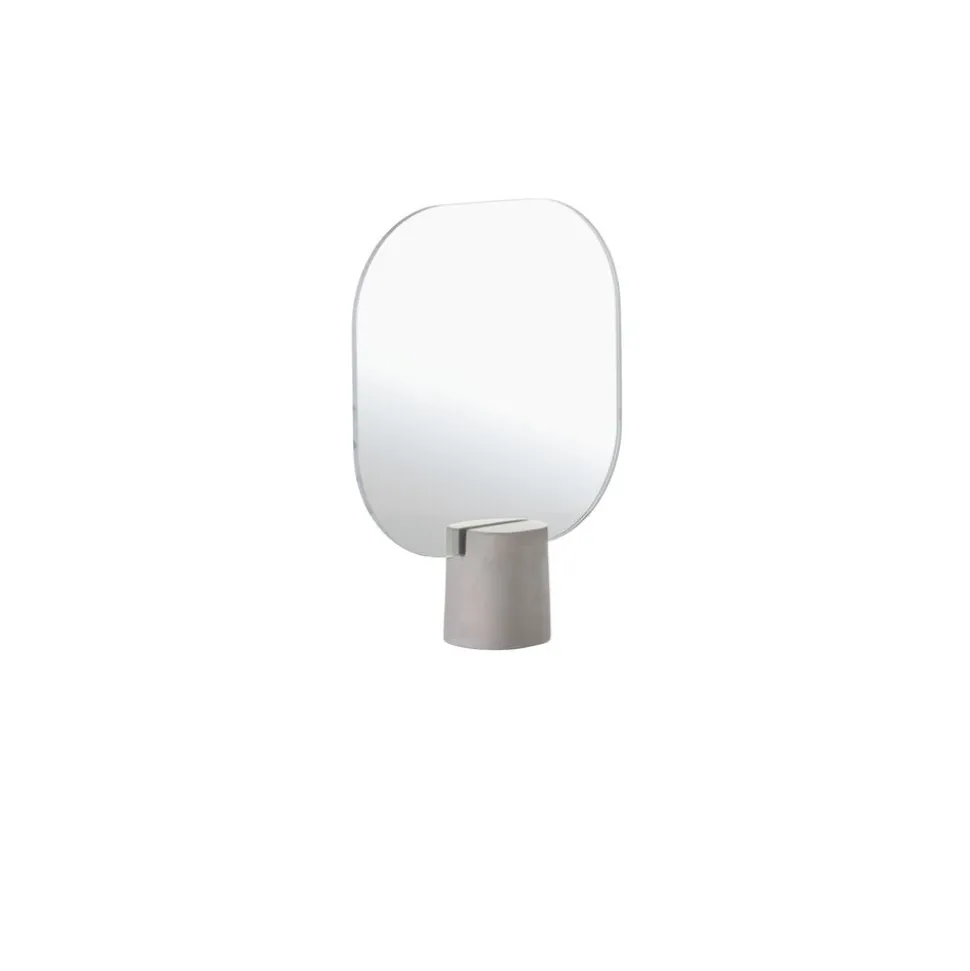 Bordspejlet i hærdet glas med betonfod har et organisk og enkelt udtryk. Det stjæler ikke rummet, men glider naturligt ind i indretningen på både badeværelse, soveværelse og entrehylde. Beton er et populært materiale, da det passer godt sammen med naturmaterialer som træ, keramik og sten. Desuden har beton den fordel, at det bliver brændt ved lavere temperatur end keramik, så man sparer en smule på energien under produktionen. Designteamet Mavro//Lefèvre står bag denne stilsikre udvidelse af Time-universet.