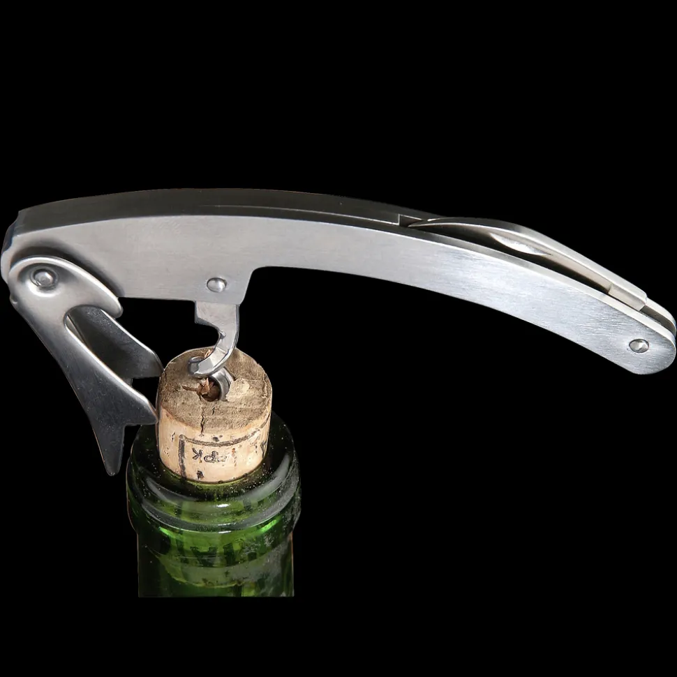 Klassisk tjenerværktøj i stål med indbygget folieskærer.