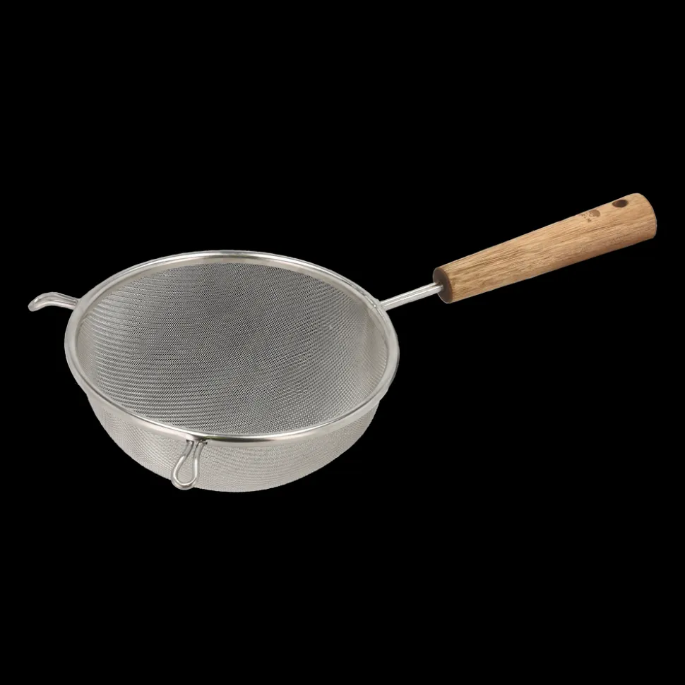 Denne klassiske trådsigte af rustfrit stål med håndtag af smukt akacietræ hører hjemme i ethvert køkken. Det fintmaskede net er perfekt til at sigte mel, sukker, kakao og andre tørre ingredienser, samt til at mose frugt eller bær og sigte supper og sovse. Dia. 16 cm.