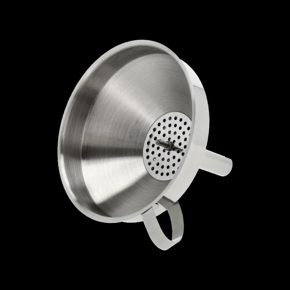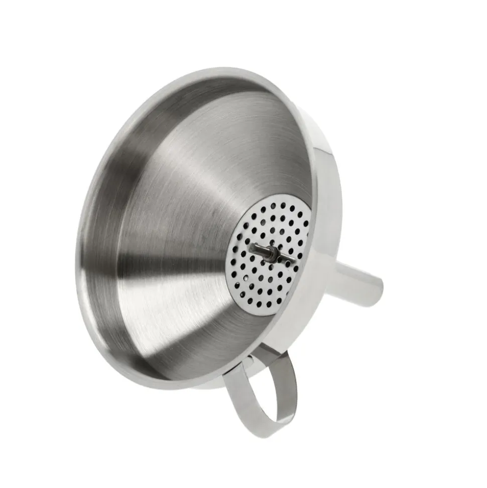 Praktisk tragt med hank i rustfrit stål. Tragtens åbning i toppen er dia. 15 cm. Den brede bund gør tragten ideel at bruge, når der skal hældes marmelade, syltetøj eller puréer på glas. Velegnet til opvaskemaskine.