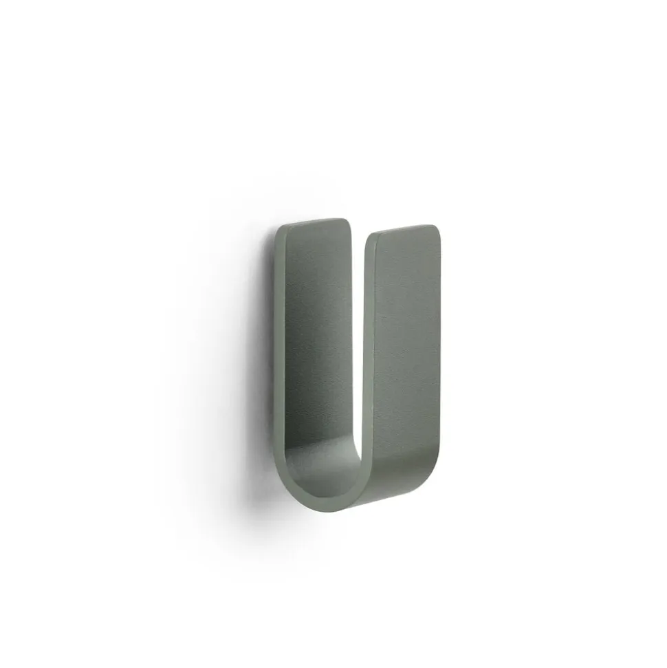 De små vægkroge kan sikkert, men diskret, bære alt fra håndklæderne til badebørsten. De runde hjørner giver krogene et venligt udtryk, og takket være skjulte beslag har de en klædelig lethed på væggen. De er lette at montere, ja faktisk er det sværeste nok at vælge farve. De små skønheder i pulverlakeret aluminium fås nemlig i hele 9 forskellige nuancer samt rustfrit mat stål.