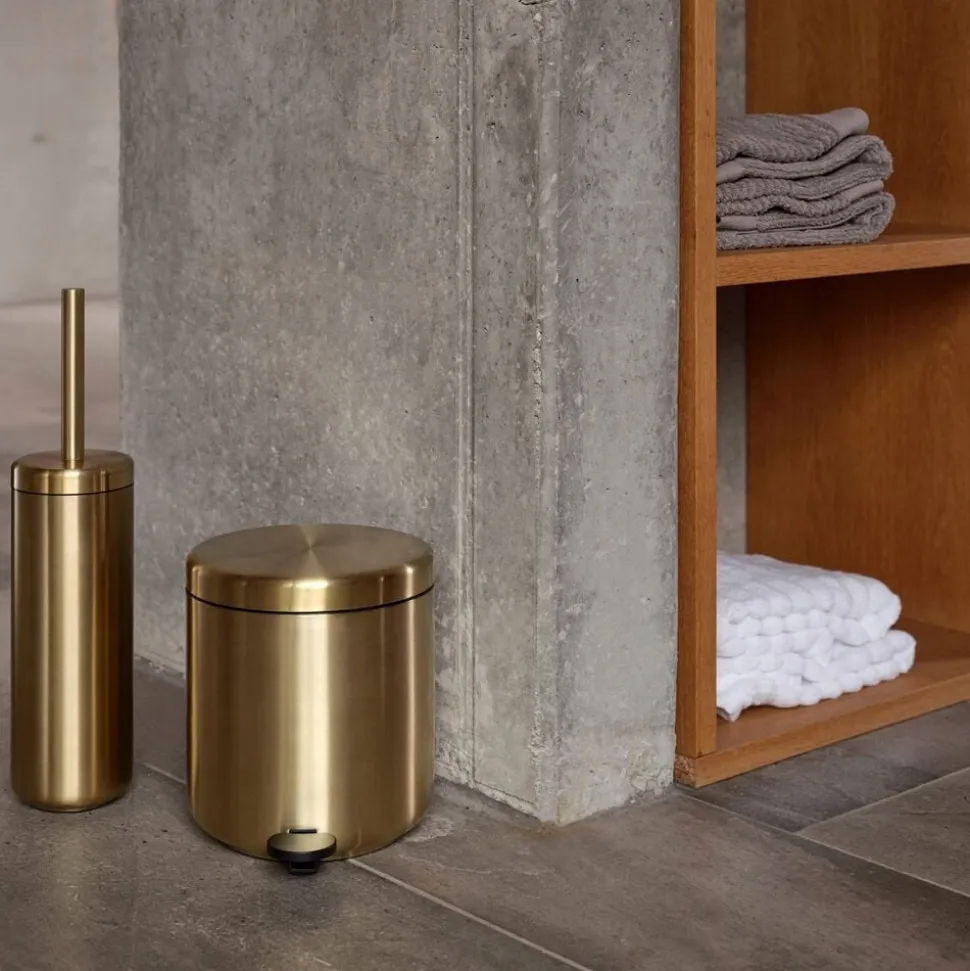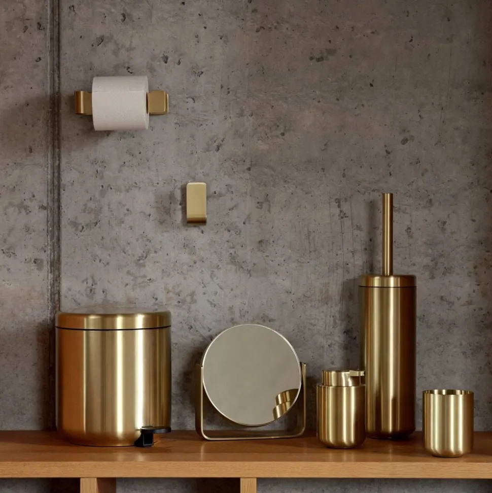 I gulvhøjde byder serien på en mindre pedelspand samt toiletbørste i cylinderformet holder. Til væggen er der matchende toiletrulleholder samt kroge i elegant u-form med skjulte beslag.