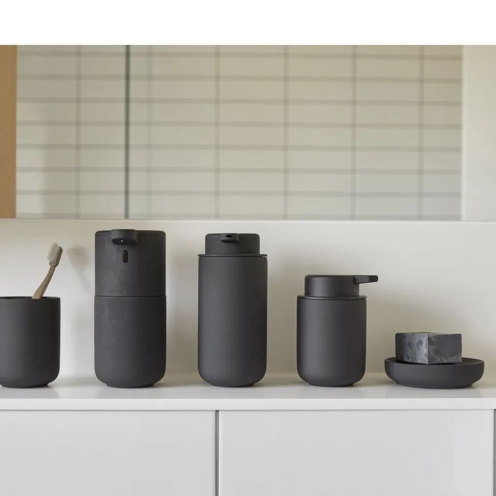 Sæbedispenseren har eksempelvis en lang tud for optimal pumpefunktion, ligesom toiletbørsten er udstyret med en praktisk inderkop, så overskydende vand let kan tømmes af – og så har børsten en god arbejdslængde og glider let på plads i holderen.