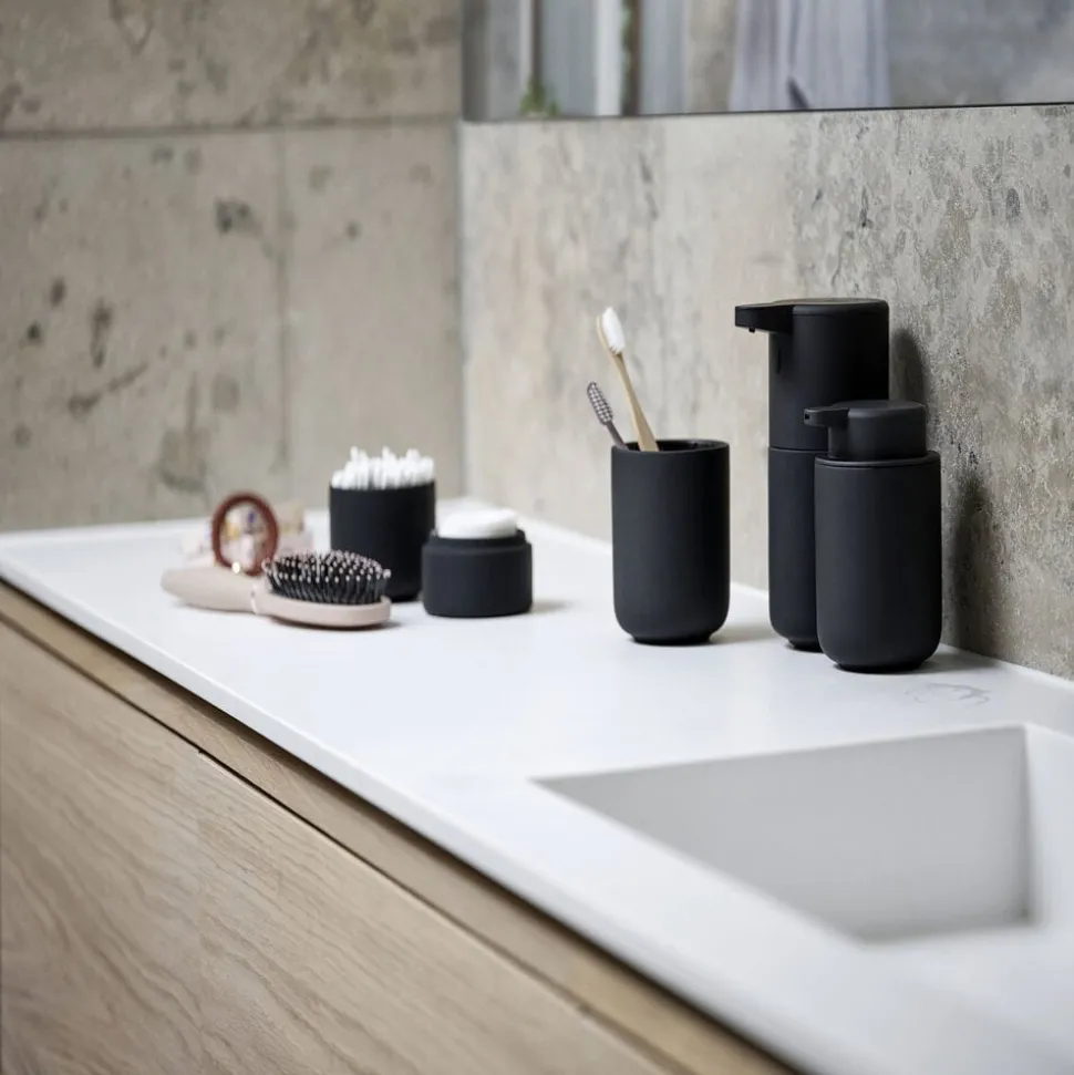 Tandbørstekruset fra badserien Ume fås i de fineste blide farver. Det er i det hele taget et blødt og behageligt bekendtskab, og det er designertrioen VE2, som står bag udformningen af de velproportionerede elementer i serien. Højde 10,3 cm.