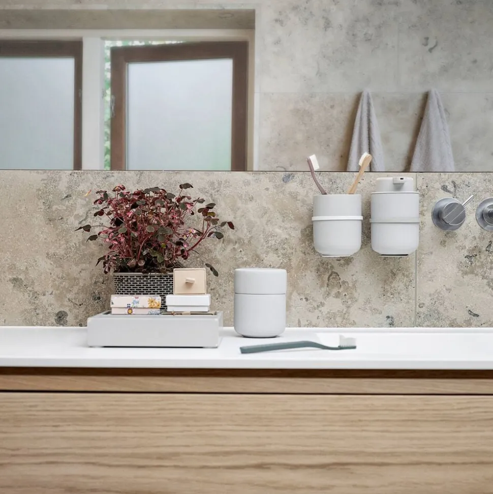 Tandbørstekruset fra badserien Ume fås i de fineste blide farver. Det er i det hele taget et blødt og behageligt bekendtskab, og det er designertrioen VE2, som står bag udformningen af de velproportionerede elementer i serien. Højde 10,3 cm.