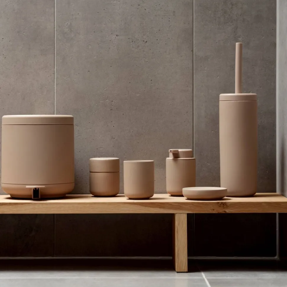Sæbedispenseren har eksempelvis en lang tud for optimal pumpefunktion, ligesom toiletbørsten er udstyret med en praktisk inderkop, så overskydende vand let kan tømmes af – og så har børsten en god arbejdslængde og glider let på plads i holderen.