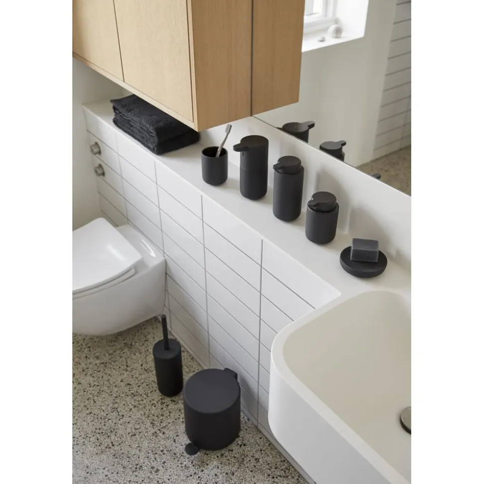 Toiletbørsten fra badserien Ume har en praktisk inderkop, så overskydende vand let kan tømmes af, og børsten har en god arbejdslængde og glider let på plads i holderen. Designertrioen VE2 har skabt seriens velproportionerede elementer. Højde 38,7 cm.