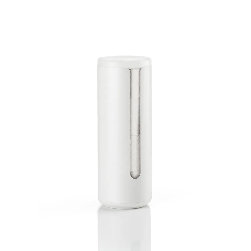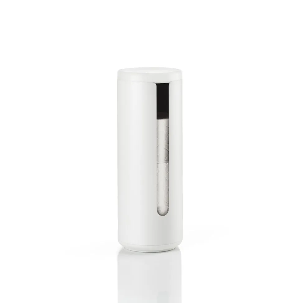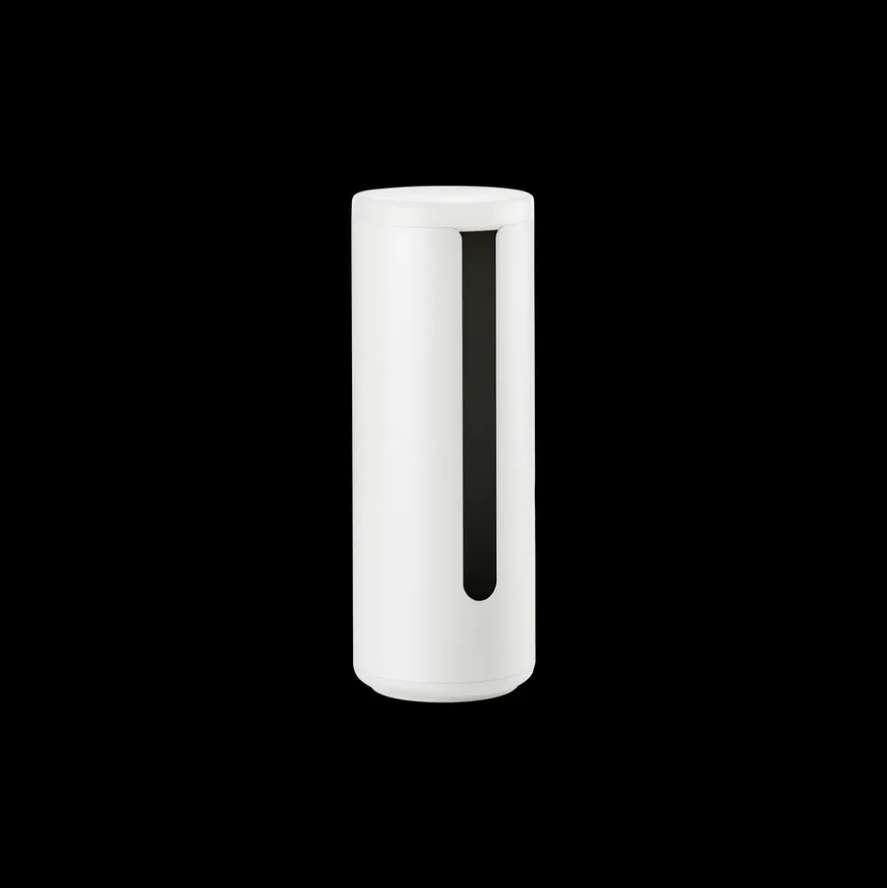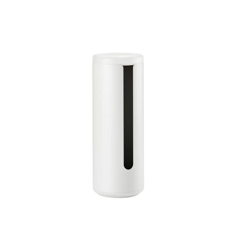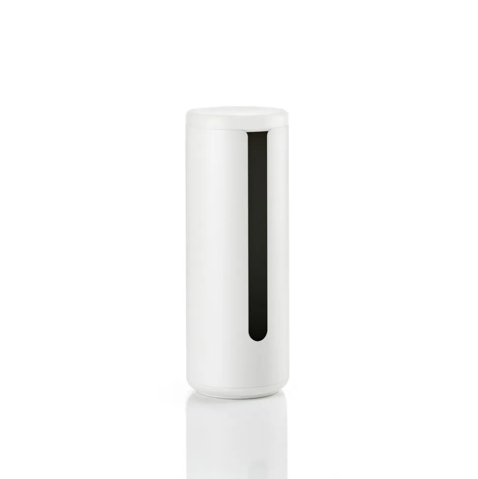 Den cylinderformede toiletrulleholder har plads til tre ruller, og du kan placere den, hvor du vil. Takket være tyngden i bunden står det lille dekorative tårn stabilt på gulvet. Alt er udført i pulverlakeret aluminium, så det er let at støve af og kan klare livet i det til tider fugtige miljø som et badeværelse kan være. Du fylder nemt nye ruller i ved at løfte låget af.