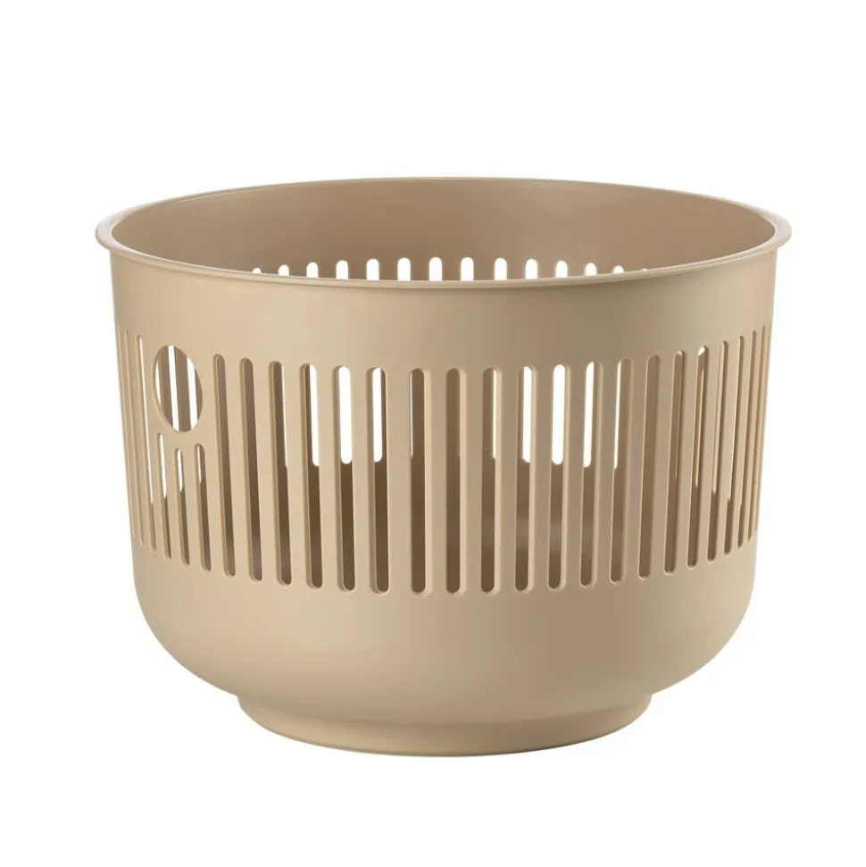 Den lave, åbne UME-kurv er praktisk og pæn på samme tid. Dens organiske og transparente look giver en lethed i rummet. To runde huller i siderne fungerer som grafisk fornøjelse for øjet og desuden som håndtag for dig, der flytter den rundt. Kurven er genial, når du skal transportere snavset tøj til maskinen eller rent tøj til tørresnoren.