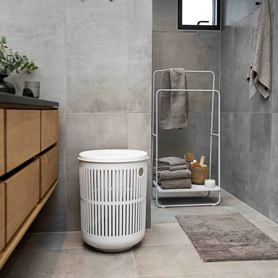 Organisk og praktisk – så simpelt kan man beskrive vasketøjskurven fra Zones Ume-serie. Med denne kurv er det nemt at holde styr på vasketøjet. Låget kan let løftes af, men det behøver du ikke altid. Strømper og andre småting kan nemlig smides igennem hullet i midten. På siden er to mindre huller, der fungerer som håndtag, når vasketøjskurven skal flyttes.