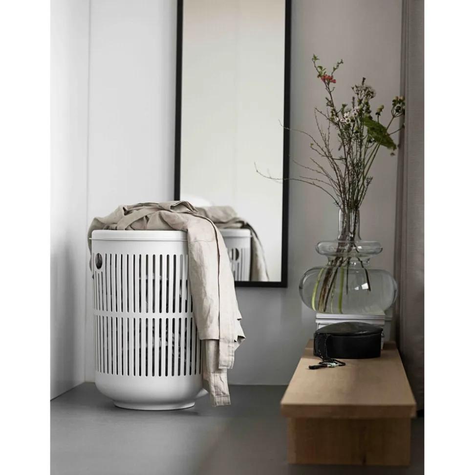 Organisk og praktisk – så simpelt kan man beskrive vasketøjskurven fra Zones Ume-serie. Med denne kurv er det nemt at holde styr på vasketøjet. Låget kan let løftes af, men det behøver du ikke altid. Strømper og andre småting kan nemlig smides igennem hullet i midten. På siden er to mindre huller, der fungerer som håndtag, når vasketøjskurven skal flyttes.