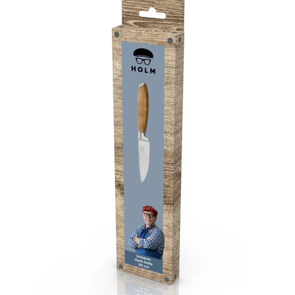 HOLMs knivserie indeholder en række lækre knive. De flot rundede skafter, der ligger behageligt i hånden, er af akacietræ med virkeligt smukke og karakteristiske åretegninger og er afsluttet med en elegant stålkappe for enden af skaftet. Bladene er af rustfrit stål i høj kvalitet. Knivene skal vaskes i hånden med varmt vand og sæbe, også før første brug.