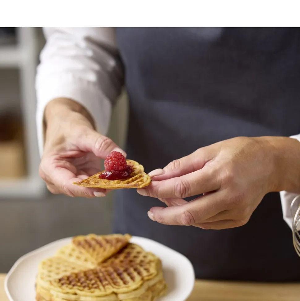 Giv morgenbordet eller eftermiddagshyggen et ekstra skud kærlighed med hjerteformede vafler, der vækker begejstring hos både store og små. Vaffeljernet har plader med en diameter på 15,5 cm og en non-stick-belægning, som får dine vafler til at slippe nemt – og den keramiske belægning er fremstillet af råvarer, der ikke indeholder PFAS. Med justerbar temperatur, lysindikator og en smart dampventilering, som sikrer, at hver vaffel får den helt rigtige sprødhed.