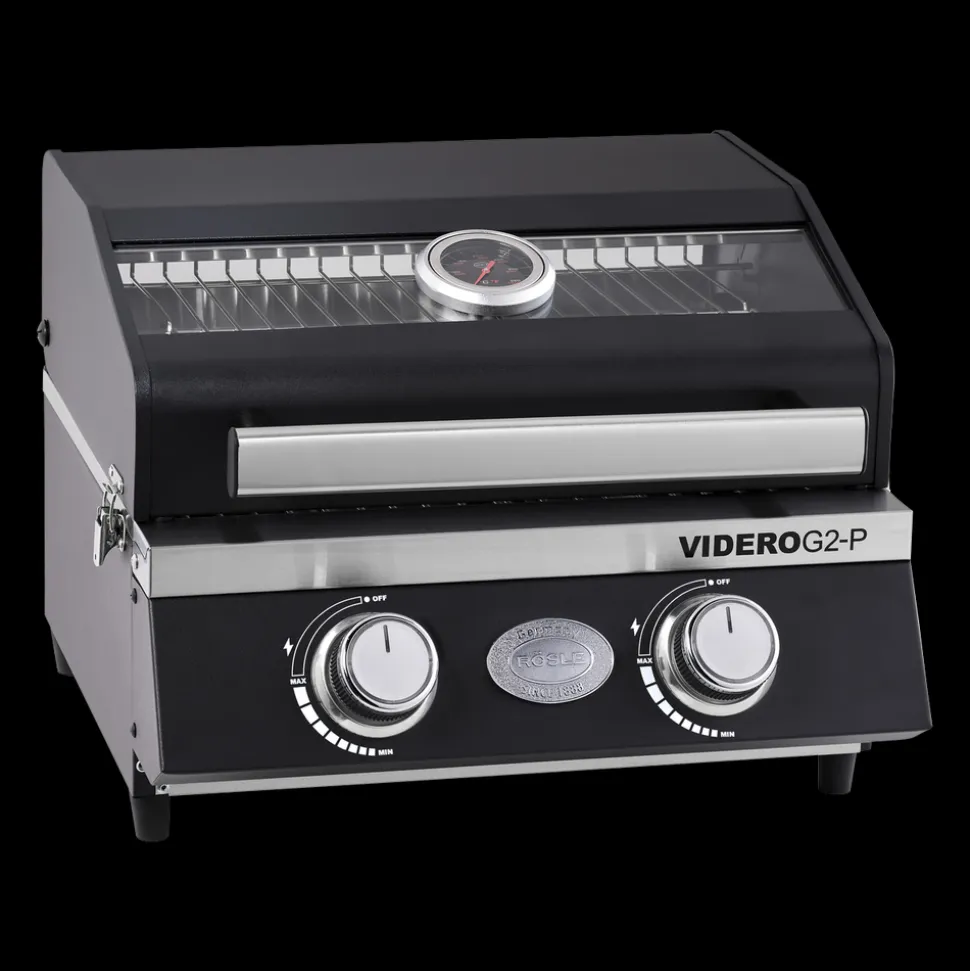 Rösle Videro G2-P gasgrill med mange funktioner og let at transportere. 2 hovedbrændere lavet af rustfrit stål (hver 2,2 kW). Hovedgrillområde: 39 x 32,5 cm. Opvarmningsstativ: 39 x 13 cm. Todelt grillrist i rustfrit stål med plads til en separat grillbakke. Der fås også en bæretaske (varenr. 26879) og et stativ (varenr. 26880) til Rösle Videro G2-P gasgrill, som kan tilkøbes separat.