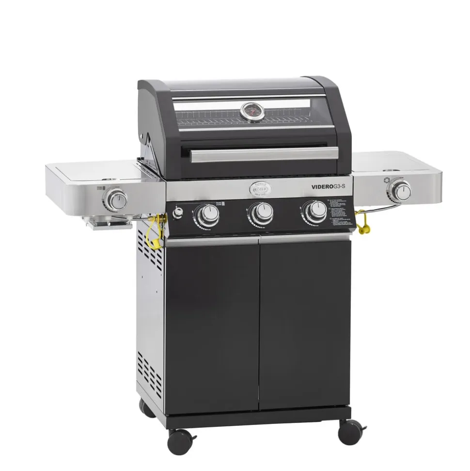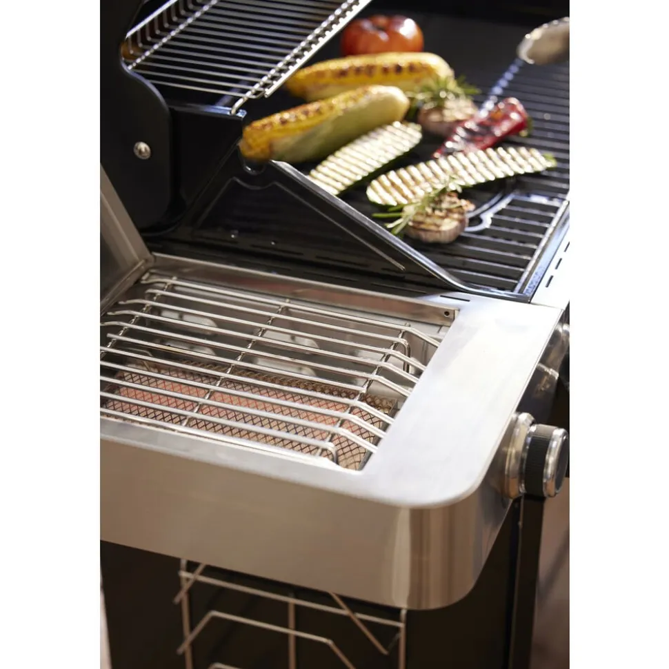 Rösle Videro G3-S gasgrill med mange funktioner. 3 hovedbrændere af rustfrit stål (hver 3,5 kW). Hovedgrillområde: 60 × 45 cm, opvarmningsstativ: 60 × 16 cm. Kraftigt grillgitter af emaljeret støbejern giver de klassiske grillstriber. Det unikke og fleksible VARIO+ grillsystem giver mange anvendelsesmuligheder: Grillen indeholder tre riste, hvoraf den runde kan fjernes og erstattes af en pizzasten (23937), en grillplade (24145), en gryde (24404) eller en wok (24143), som kommer tæt på varmekilden og derved kan opnå høj varme. Den smarte holder gør det nemt at opbevare pizzasten og grillplade. Der fås også et cover (varenr. 23916), et rotisseri (varenr. 23930) og en grillplade (35569) til Rösle Videro G3-S gasgrill, som kan tilkøbes separat.
