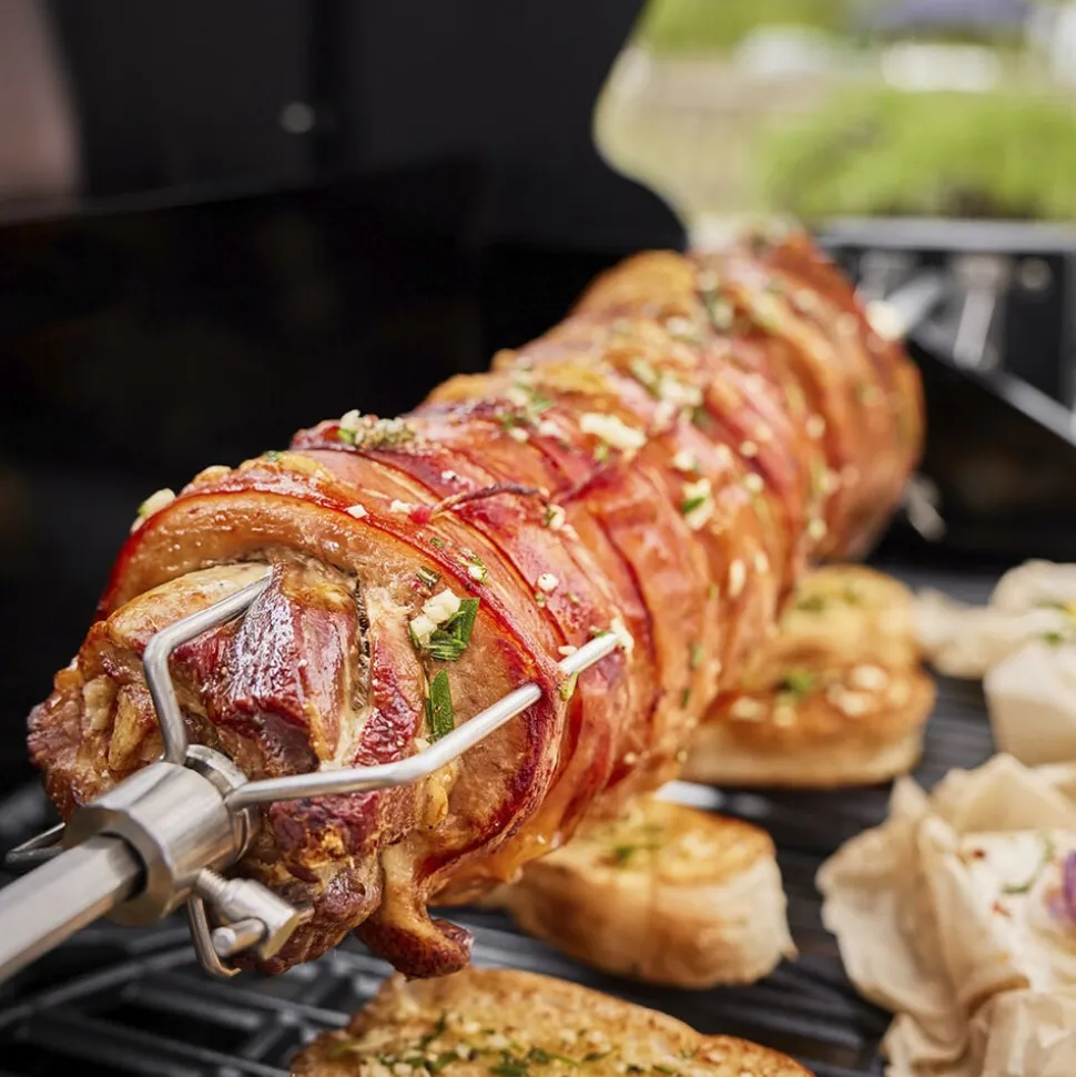 Rotisserie til tilberedning af kylling, spidsteg, gyros osv. Rotationshastigheden på ca. 3 omdrejninger pr. minut fordeler safterne jævnt og efterlader kødet sprødt udvendigt og saftigt indeni.