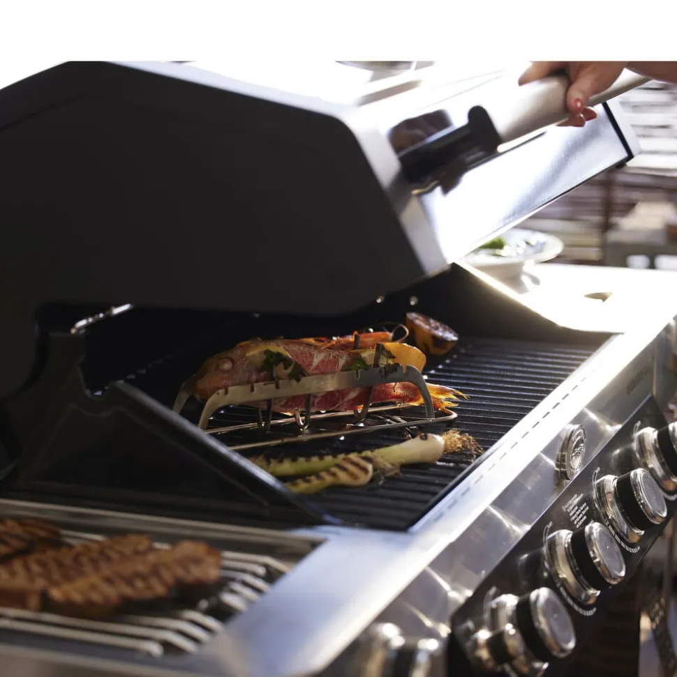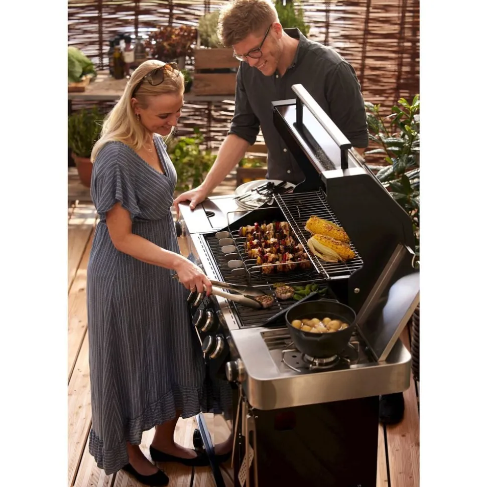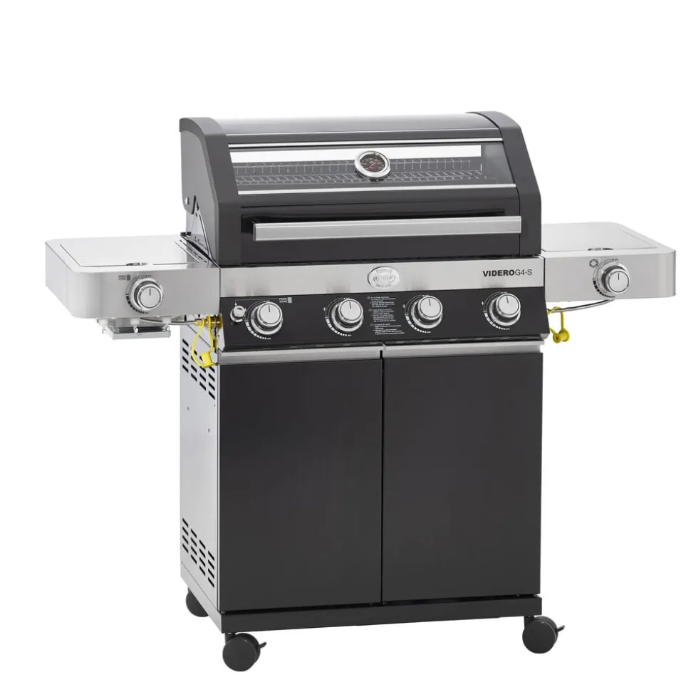Rösle Videro G4-S gasgrill med mange funktioner. Gasgrill med 4 hovedbrændere lavet af rustfrit stål (hver 3,5 kW). Hovedgrillområde: 70 × 45 cm, opvarmningsstativ: 70 × 16 cm. Kraftigt grillgitter af emaljeret støbejern giver de klassiske grillstriber. Det unikke og fleksible VARIO+ grillsystem giver mange anvendelsesmuligheder: Grillen indeholder tre riste, hvoraf den runde kan fjernes og erstattes af en pizzasten (23937), en grillplade (24145), en gryde (24404) eller en wok (24143), som kommer tæt på varmekilden og derved kan opnå høj varme. Den smarte holder gør det nemt at opbevare pizzasten og grillplade. Der fås også et cover (varenr. 23917), et rotisseri (varenr. 23931) og en grillplade (varenr. 35569) til Rösle Videro G4-S gasgrill, som kan tilkøbes separat.