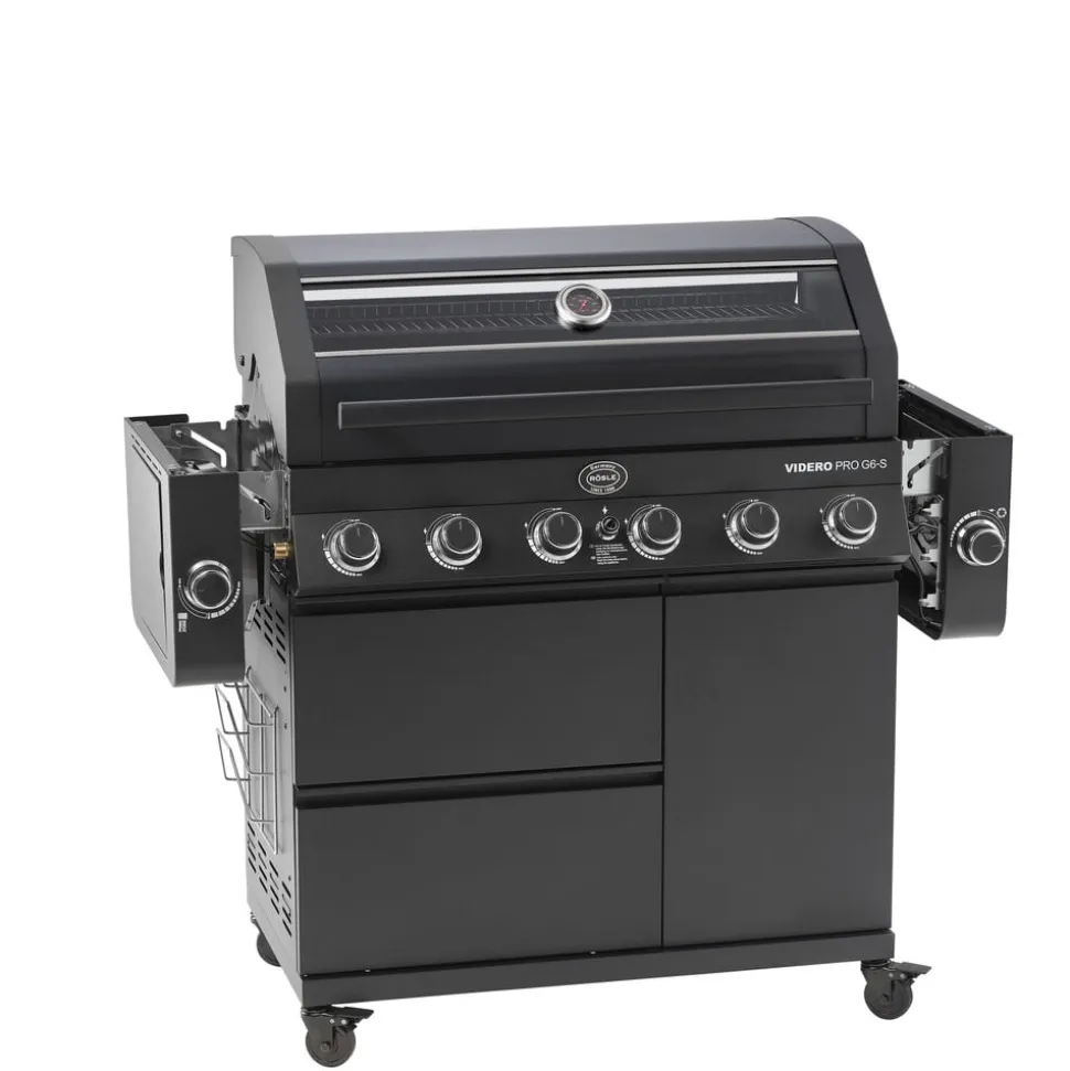 Videro PRO G6-S er udstyret med belyste knapper, foldbare sideborde og fuldt udtrækkelige skuffer, der gør det nemt at holde styr på både . Det robuste kabinet i pulverlakeret stål og de store gummihjul gør grillen nem at flytte og ekstremt holdbar – år efter år.
