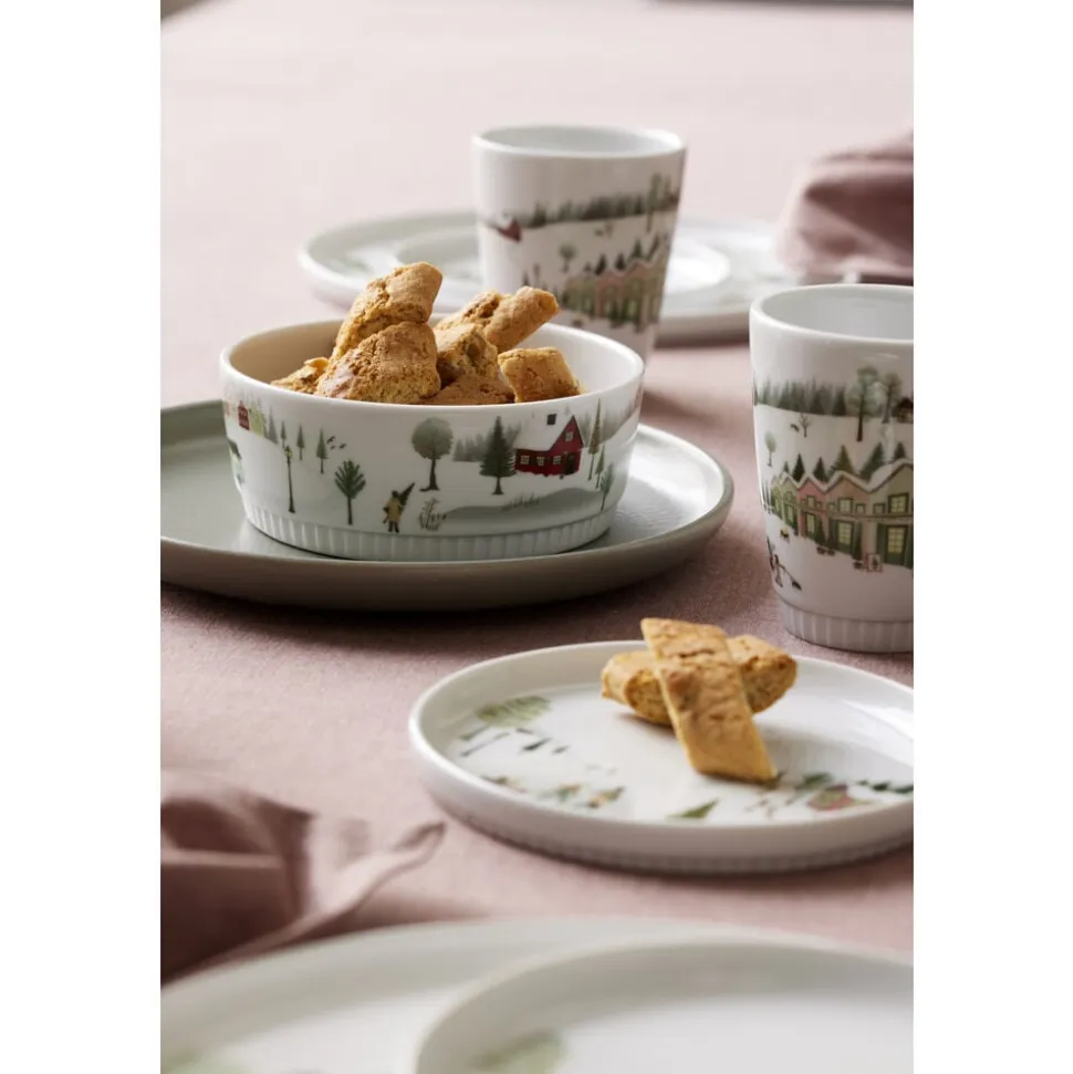 Vinter er skabt i samarbejde med designer Dorthe Mathiesen, som har udsmykket stellet med sin grafiske streg og lyse, nordiske pastelfarver. Flere forskellige motiver afspejler stemningen i de hyggelige vintermåneder og fortæller historier fra de små samfund om leg i sneen, stemningsfulde vinterlandskaber og samvær med familie og venner, som beskueren kan hoppe ind i og selv bygge videre på.