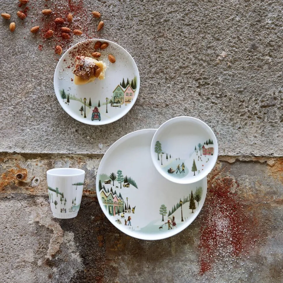 Vinter er skabt i samarbejde med designer Dorthe Mathiesen, som har udsmykket stellet med sin grafiske streg og lyse, nordiske pastelfarver. Flere forskellige motiver afspejler stemningen i de hyggelige vintermåneder og fortæller historier fra de små samfund om leg i sneen, stemningsfulde vinterlandskaber og samvær med familie og venner, som beskueren kan hoppe ind i og selv bygge videre på.