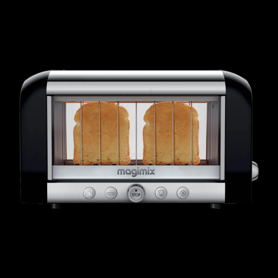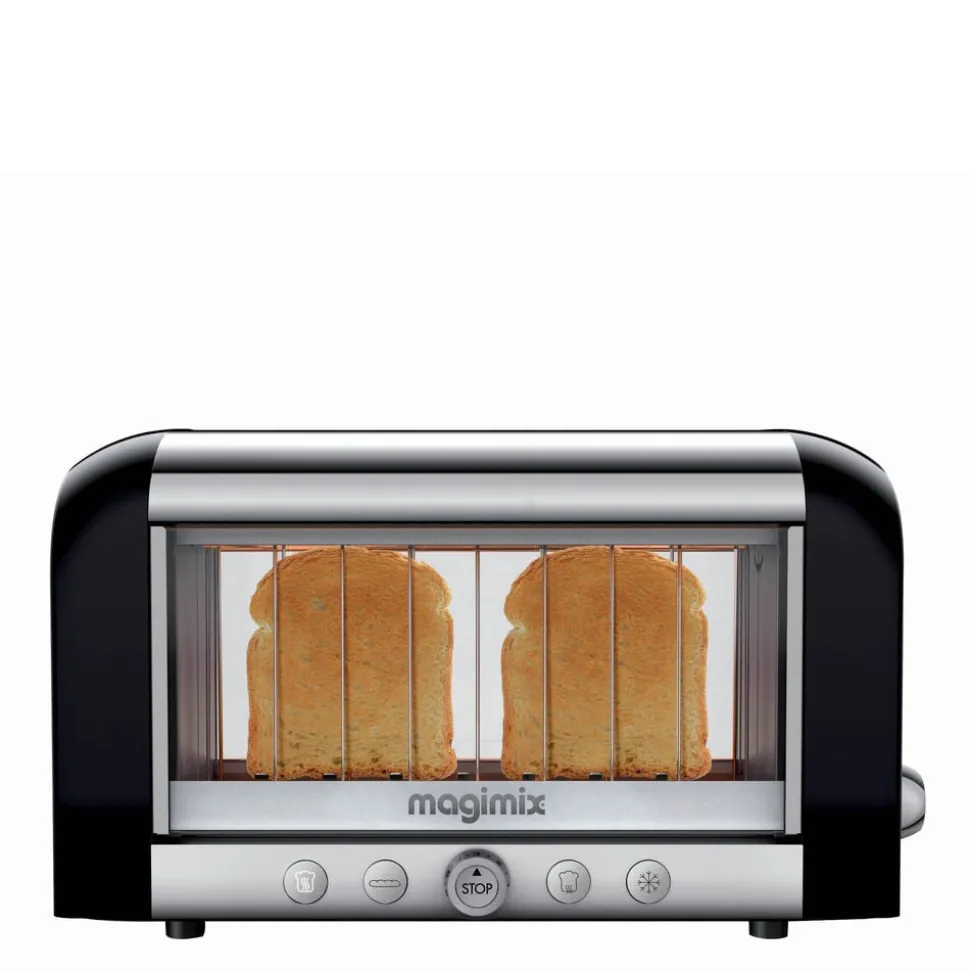 Verdens første gennemsigtige toaster, der gør det nemt at holde øje med brødets ristning. Professionel Magimix toaster, der rister, optør og varmer alle typer af brød bag isolerende dobbeltglas. Enkel at betjene med én knap pr. funktion og med plads til ekstra tykke skiver.