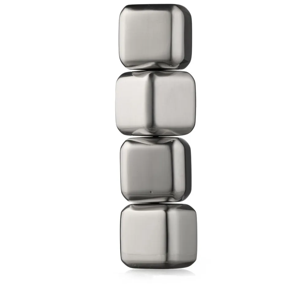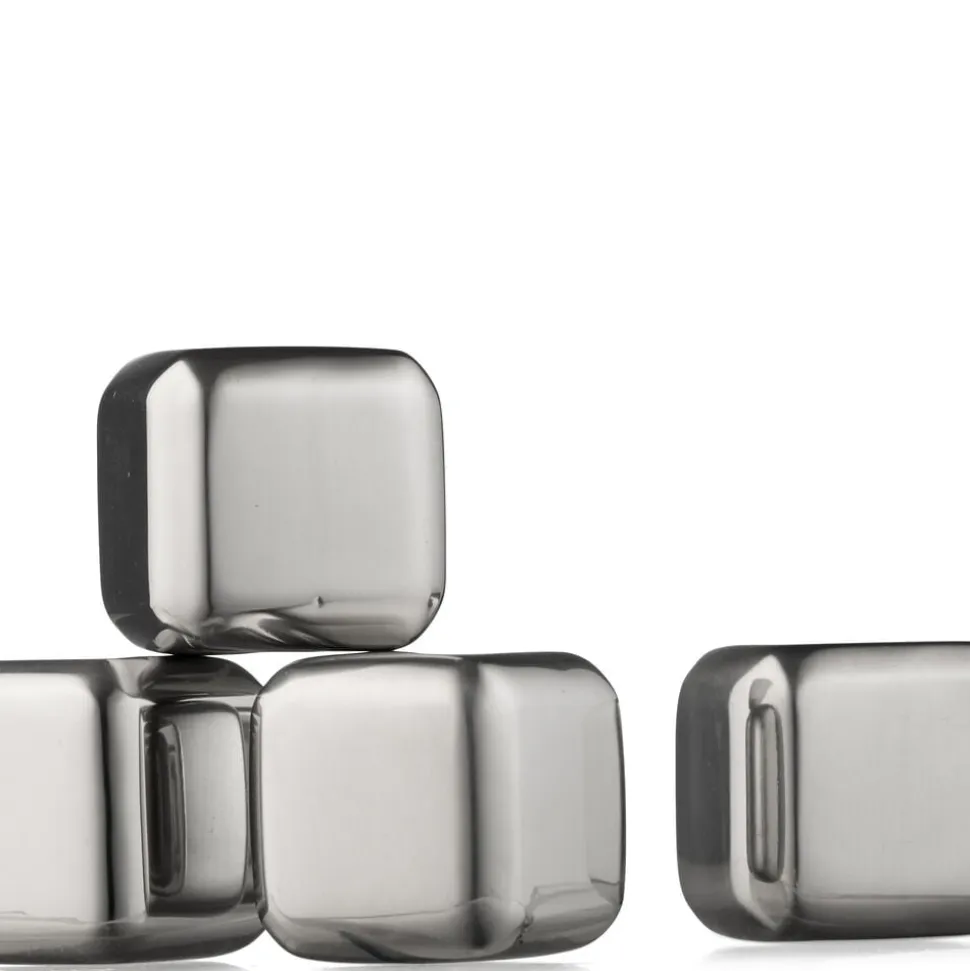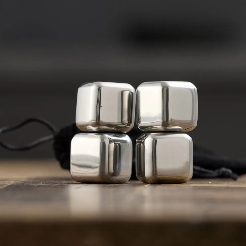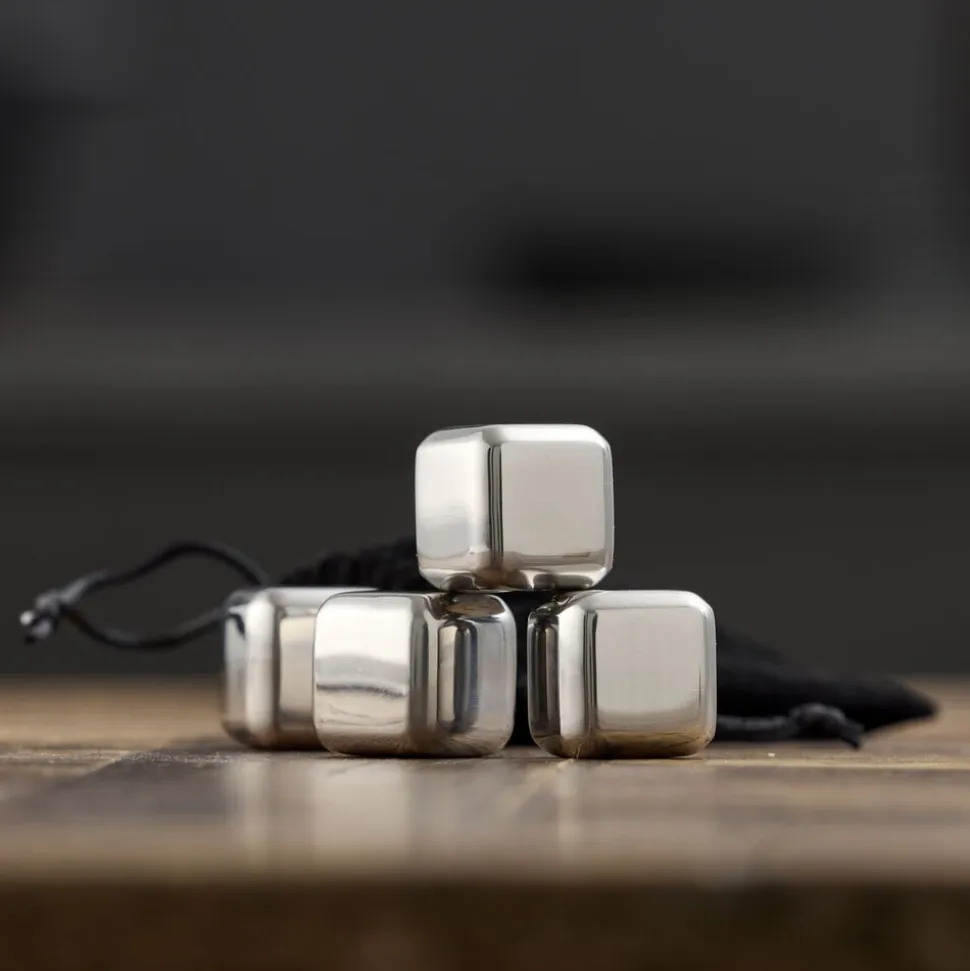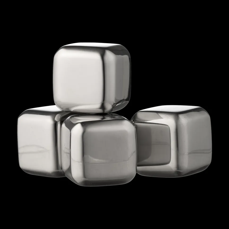 4 whiskysten i stål. Hold din drink kold med whiskysten af stål og undgå, at den bliver fortyndet af vand fra smeltede isterninger. Stenene vaskes og lægges derefter i fryseren inden brug. Opbevaringspose medfølger.