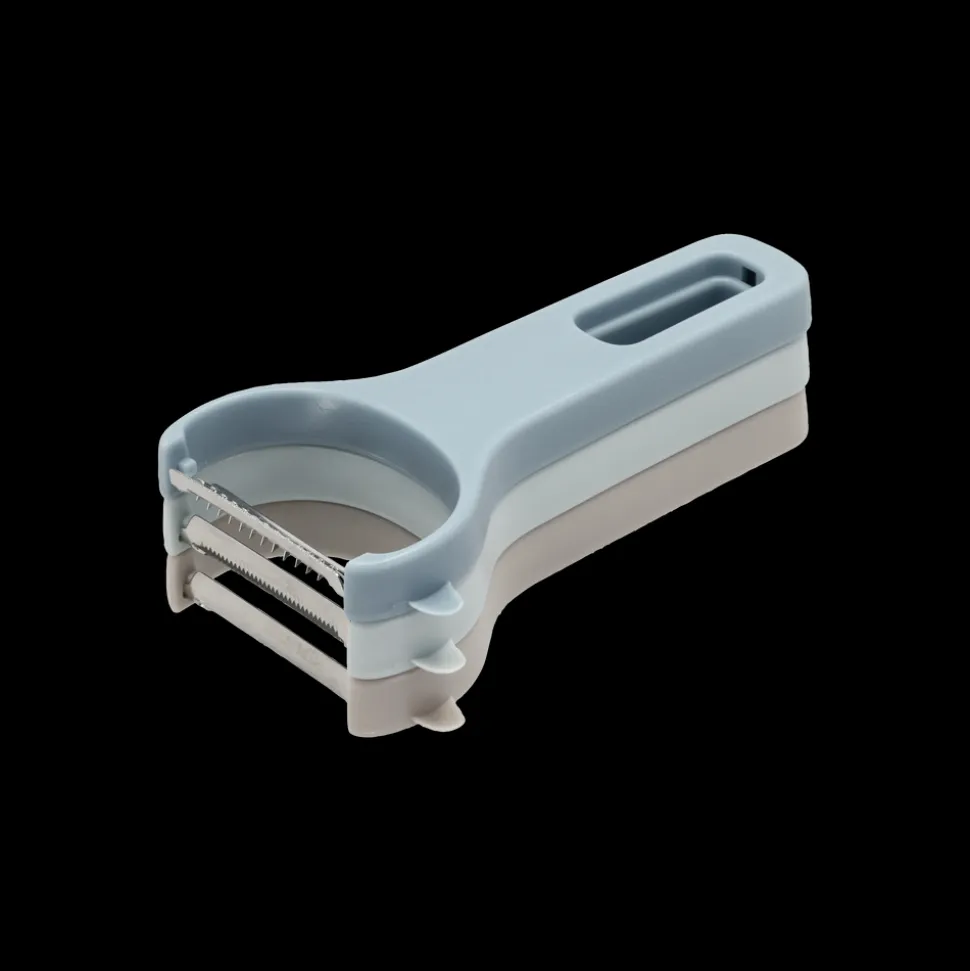 Dette sæt med tre smarte Y-skrællere gør madlavningen lettere og mere praktisk. De tre skrællere har forskellige klinger – en glat klinge til skånsom skrælning af frugt og grøntsager og to med takker i forskellig grovhed, perfekt til eksempelvis dekorative grøntsagsstrimler. Skrællerne kan nemt klikkes sammen, hvilket sparer plads og holder dem samlet i skuffen.