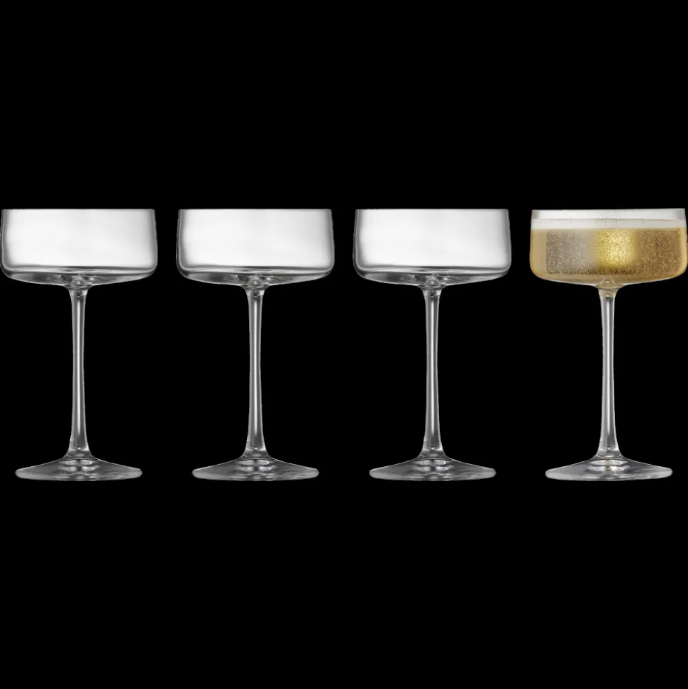 4 smukke champagneskåle fra glasserien Zero fra Lyngby Glas. Nyd den perlende champagne og glassenes fine elegance. Tåler opvaskemaskine. 26 cl, højde 16 cm.