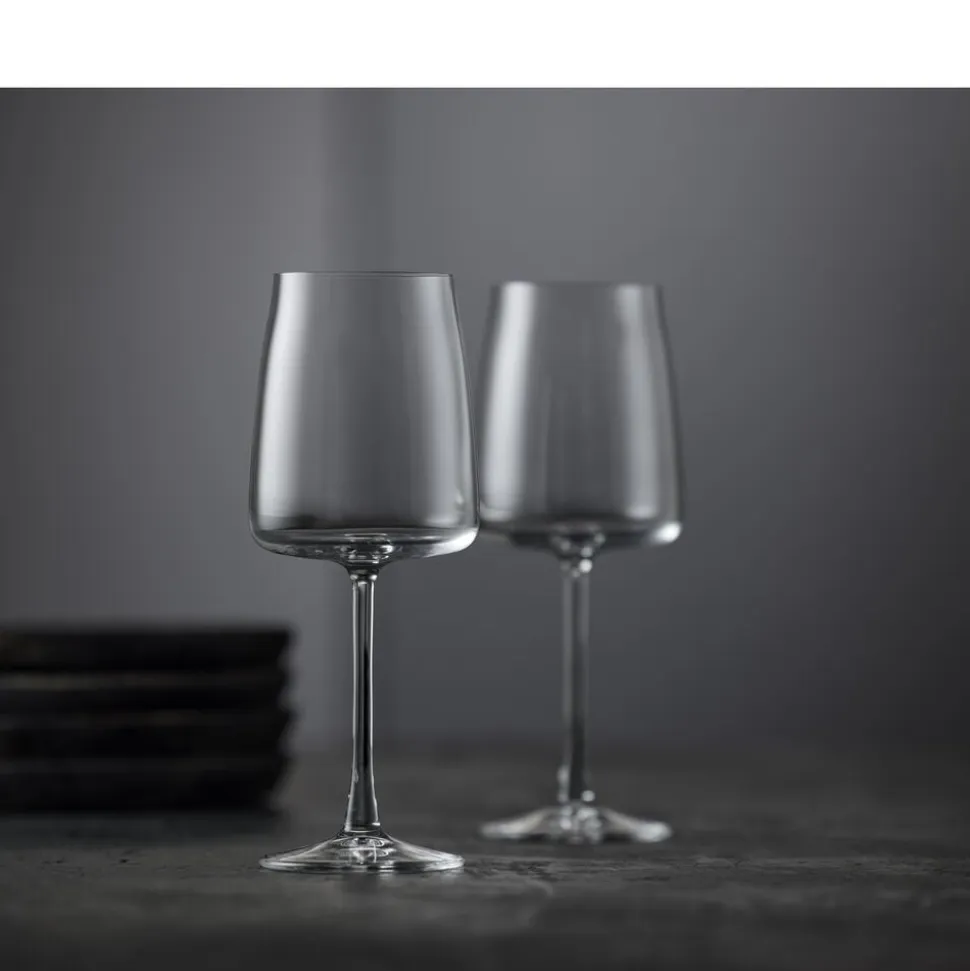 4 smukke hvidvinsglas fra glasserien Zero fra Lyngby Glas. Nyd din yndlingsvin og glassenes fine elegance. Tåler opvaskemaskine. 43 cl, højde 21,5 cm.
